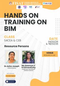 Department organized a two-day hands-on training program on Building Information Modelling (BIM) on 4th and 10th February 2026. The program was conducted in association with the ACE, ASCE Student Chapter and ISTE FISAT Chapter, with the objective of equipping students with industry-relevant digital construction skills. The sessions were handled by our faculty members, Dr. Asha Joseph, Professor, and Ms. Sowmya V. Krishnankutty, Assistant Professor (Senior Grade).