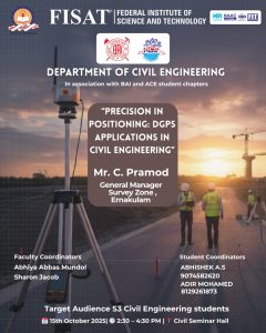 The department is an institutional member of Builders Association of India (BAI), Angamaly Centre since 2017. One of the major activities that the department has undertaken is organising a build expo, NIRMAN. This build expo is organised by the department for the public, hosted outside the campus. The first build expo was organised in the year 2017, NIRMAN 2k17. This was followed by similar events in the year 2018 and 2019. In addition to exhibition stalls, invited talks are also organised for the benefit of the community and students.