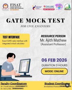The department organized an orientation session for final-year students on various competitive examinations in Civil Engineering, including GATE, IES, and UPSC, along with an overview of the opportunities available after qualifying GATE, in association IGS. The session was handled by Mr. Ajith Mathew, Assistant Professor at Civilianz, on 6 February 2026.