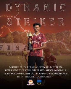 4.Mridul M , S6 EEE has been selected to represent KTU University men’s football team