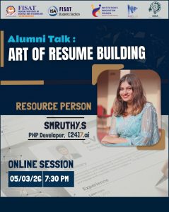 - Talk on Placement Preparatory for embedded system companies was conducted for EIE students by Godson Thomas (2018-2022 batch, EIE), Graduate Engineer (Embedded Systems), KalkiTech, Cochin on 02-09-2023