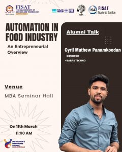 - Talk on Scope of Instrumentation was done by Ms Reshma R (2018-2022 Batch, EIE), TCS -& Mr Cyril Mathew- (2017-2023 Batch, EIE), Entrepreneur to newly joined EIE students of 2022 admission Batch on 16-09-2022