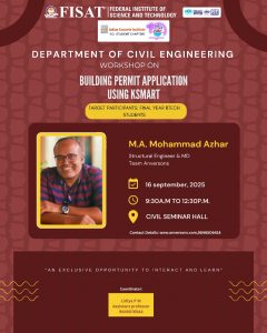 FISAT is an institutional member of the Indian Concrete Institute. A student chapter of ICI is also active in the campus. ICI organizes invited talks, plant visits and contests for students in concrete and related technologies. The ICI FISAT student chapter was established in the year 2014 and has coordinated various events, competitions and invited talks. More than 150 students are members of the ICI student chapter of FISAT.