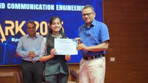 Somya Goswami of S3 CE B won the 3rd Prize in ThinkQuest, an event conducted as part of Techspark by the Department of Electronics & Communication Engineering, FISAT in July, 2025.