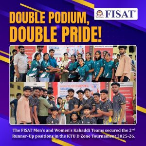 The FISAT College Kabaddi Teams, both men and women bagged the second runner up position in the KTU D Zone tournaments held on Monday, 16 September 2025 at KMEA, Edathala. Niranjan Hari and Sreehari M S from S1 CE B were part of the mens’ team.