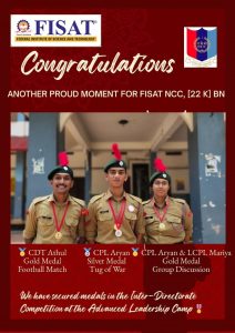 Atul CG of S5 CE A won the Gold medal in the Football match of the Inter-Directorate Competition held at the Advanced Leadership Camp.