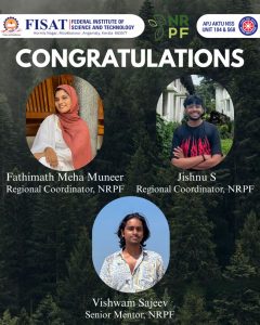 Fathimath Meha Muneer of S5 CE A got selected as the Regional Coordinator of Natural Resource Protection Force (NRPF) of National Service Scheme (NSS) Ernakulam District for the year 2025-26.