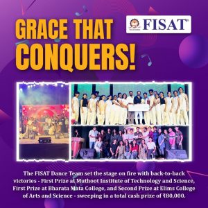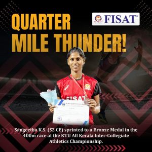 The FISAT volleyball teams won the D-Zone Tournament – with the Men’s Team clinching the championship title and the Women’s Team securing the runner-up position. Ajul Ali, Ashwin Joseph M P, Ashmith V and Agnivesh P S of S1 CE were part of the MEN’S Team while the Women’s Team had two students, Meenakshi Theertha and Sangeetha K S of S1 CE.