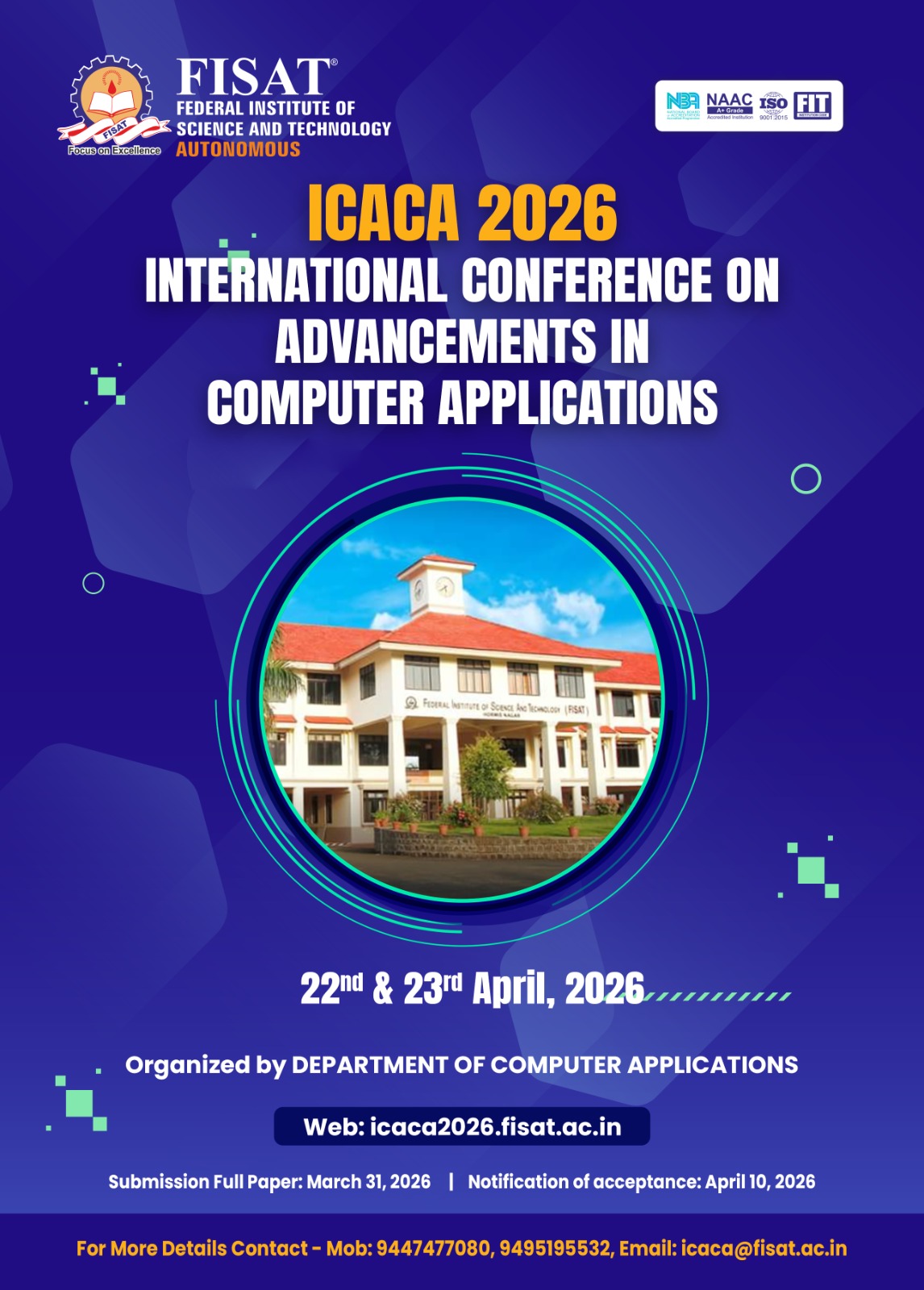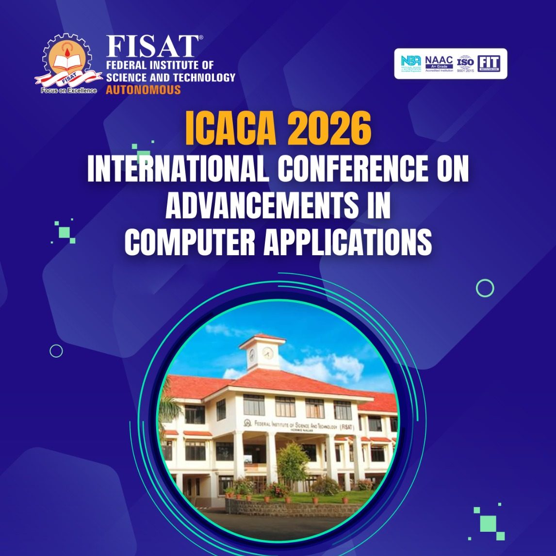 Call for Papers: ICACA 2026 (Hybrid Mode) 🌐 The Department of Computer Applications, FISAT (Kerala), invites original research article submissions for the International Conference on Advancements in Computer Applications 2026 (ICACA2026)