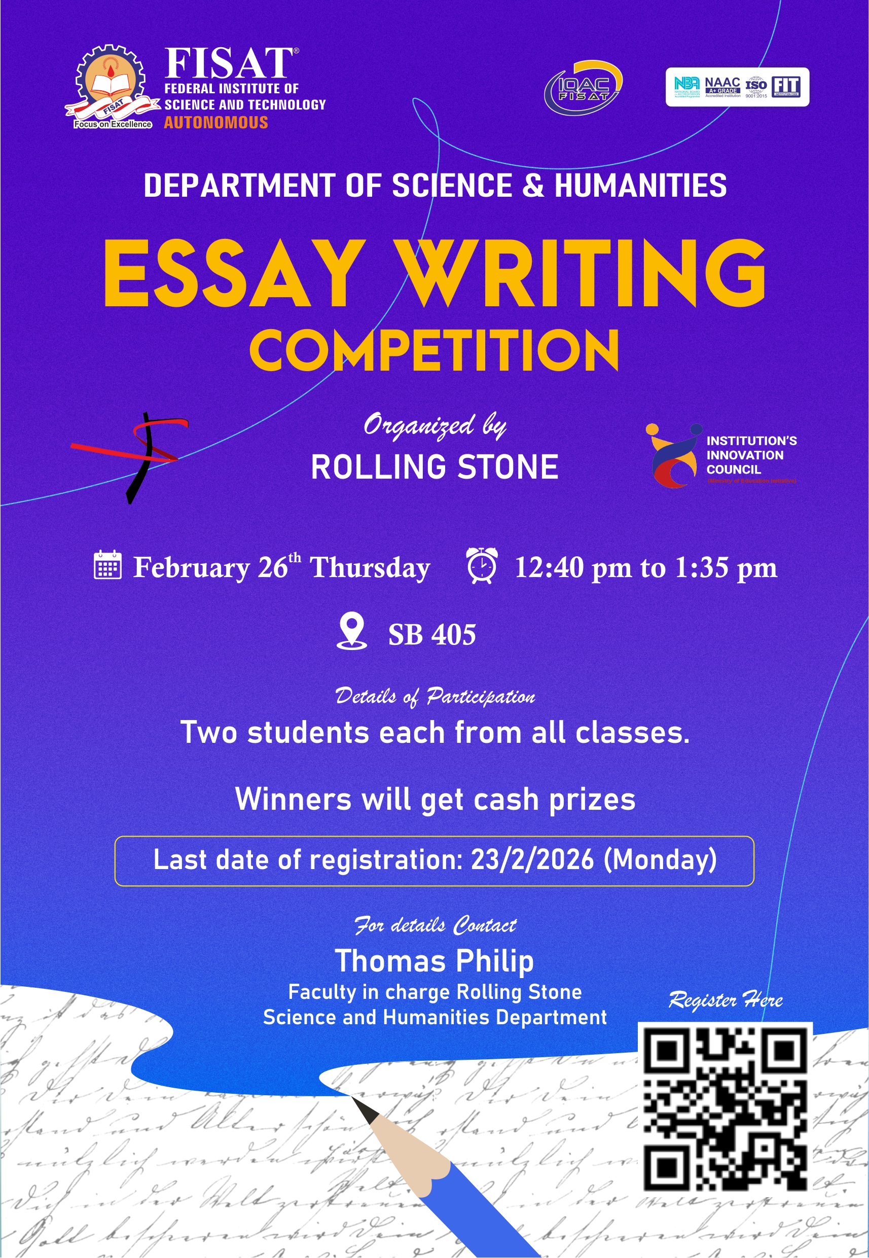 For queries, contact: Faculty-in-Charge (Rolling Stone): Mr. Thomas Philip 📱 Mob: 9847897507