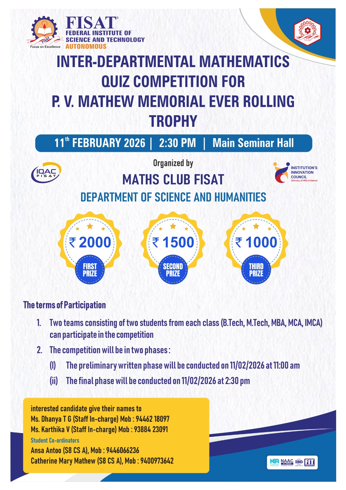 INTER-DEPARTMENTAL MATHEMATICS QUIZ COMPETITION FOR P. V. MATHEW MEMORIAL EVER ROLLING TROPHY