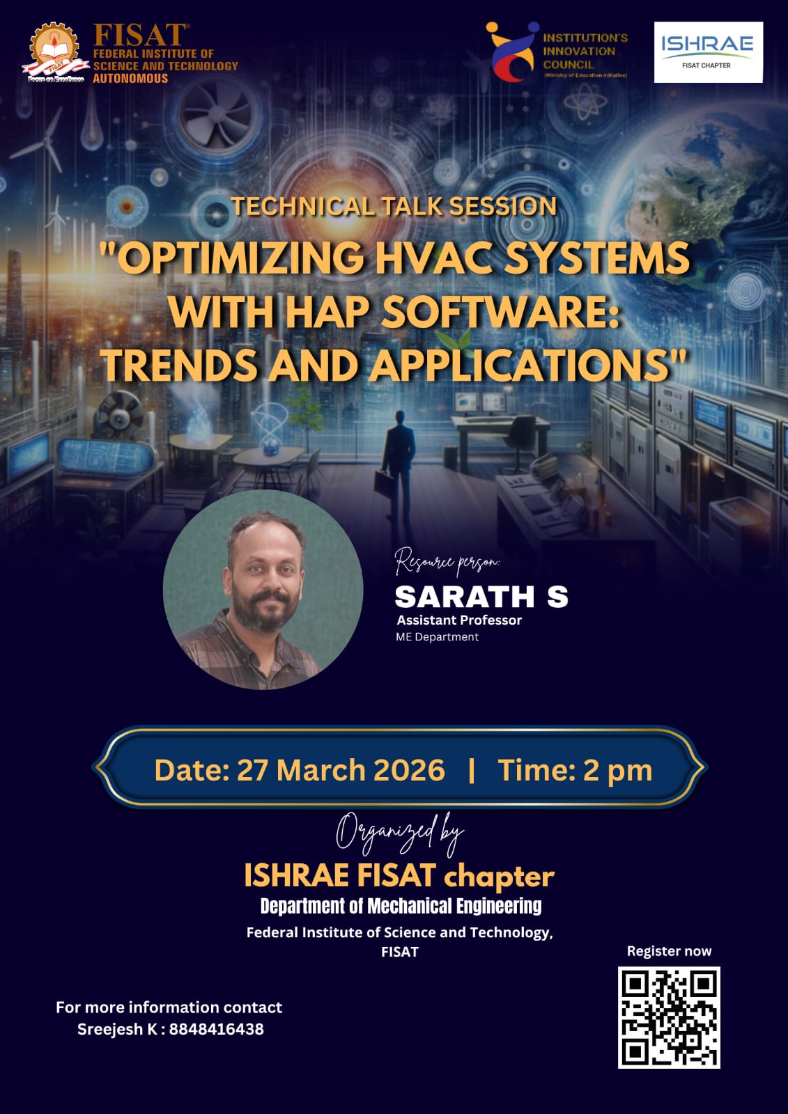 The Department of Mechanical Engineering in association with ISHRAE Student Chapter FISAT is organizing a session on